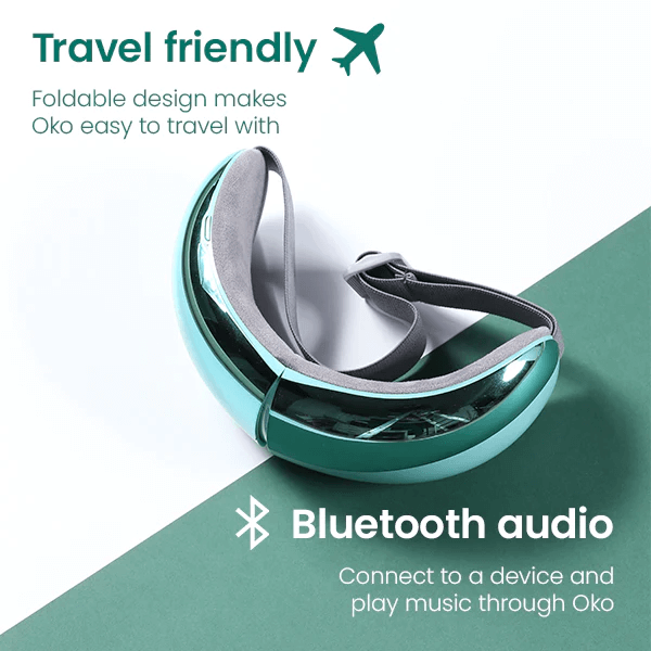 Nešiojamas ir patogus, keliauti pritaikytas dizainas: Dėl sulankstomos ausinės konstrukcijos lengva keliauti ir laikyti, todėl „Oko Eye Massager” patogu nešiotis su savimi, kad ir kur eitumėte, užtikrinant atsipalaidavimą bet kada ir bet kur.