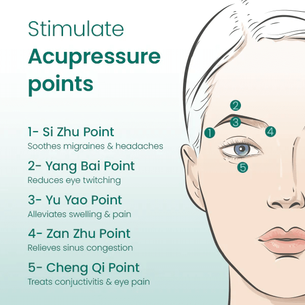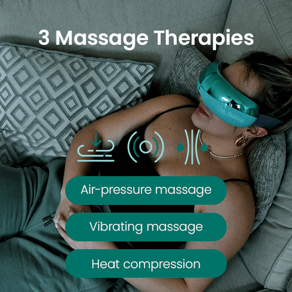 Oro slėgio masažas: oro slėgio susitraukimas ir atpalaidavimas masažuoja pagrindinius akupresūros taškus aplink akis.