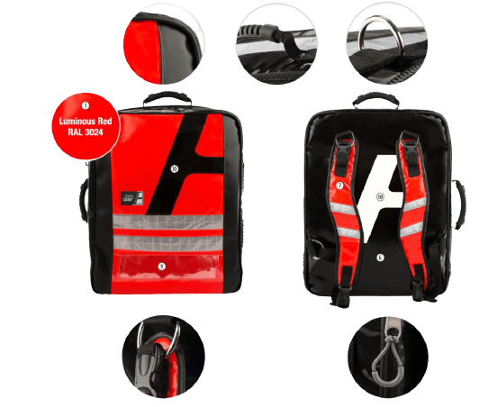 - Modulinės sistemos dėka krepšio / kuprinės vidus gali būti pagamintas be kilpų ir velcro juostų, visiškai atsparus nešvarumams. Taigi, mikrobų rizika žymiai sumažėja.