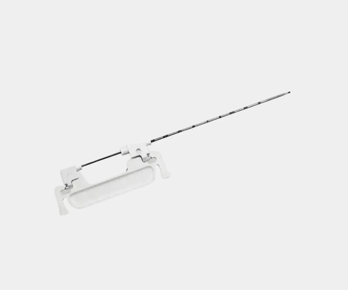 • Gylio žymės: Kanulė pažymėta gylio matmenimis, kad būtų galima tiksliai įkišti adatą.