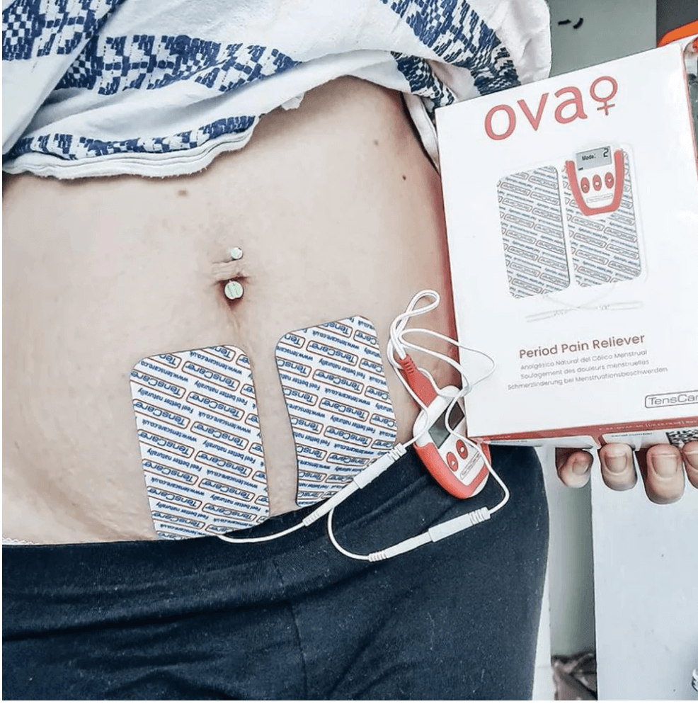 „TensCare Ova +” menstruacijų ir dubens skausmo malšinimo prietaisas su 4 papildomais elektrodais.